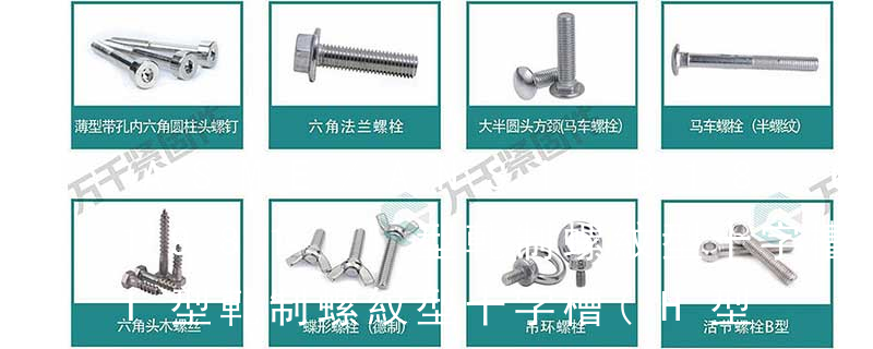 1、Flat:平頭 (鎖入后,頂部與工作件齊平)2、Oval:色拉頭、O頭、半沉頭 3、Round:圓頭 4、Pan:圓扁頭 5、Truss:大圓扁頭 6、Hex:六角頭 A-5:Finish Code/外觀處理。公制自攻螺絲 :于品名后方直接標示 Tapp 六角花形等;內扳擰:一字槽、十字槽H型、十字槽Z型、十字槽F型、四方槽、復合槽、內花鍵、內六角花形、內三角、內六角、內12角、離合器槽、六葉片型槽、高扭矩十字槽等。3、螺紋種類螺紋種類繁多,有自攻螺紋(