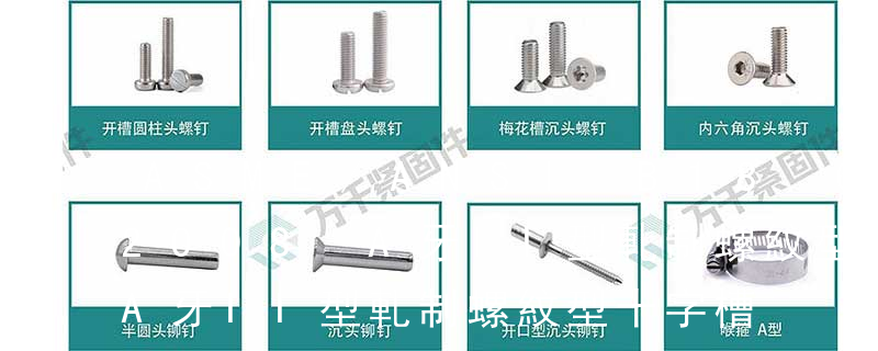 六角花形等;內扳擰:一字槽、十字槽H型、十字槽Z型、十字槽F型、四方槽、復合槽、內花鍵、內六角花形、內三角、內六角、內12角、離合器槽、六葉片型槽、高扭矩十字槽等。3、螺紋種類螺紋種類繁多,有自攻螺紋(